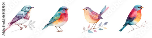Fototapeta premium Watercolor Birds Collection - Colorful Songbirds Illustration Set