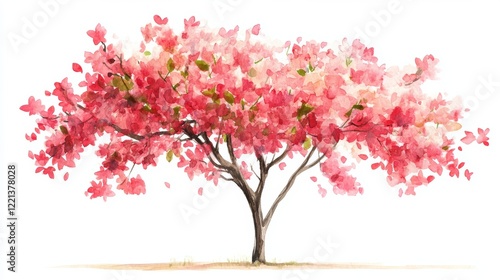 © Gro, Fototapeta premium Watercolor Blooming Flower Tree Side View for Landscape and Architecture Drawing