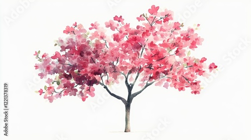 © Gro, Fototapeta premium Watercolor Blooming Flower Tree Side View for Landscape and Architecture Drawing