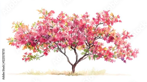 © Gro, Fototapeta premium Watercolor Blooming Flower Tree Side View for Landscape and Architecture Drawing