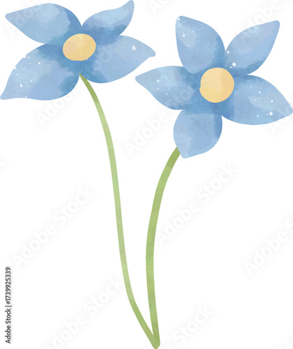 Naklejka premium Watercolor Blue Flowers Illustration, Cute Botanical Clipart