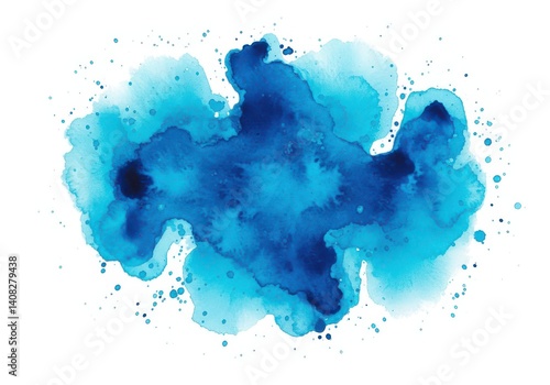 © Sarwar, Obraz premium Watercolor blue splash abstract art design illustration isolated on white background