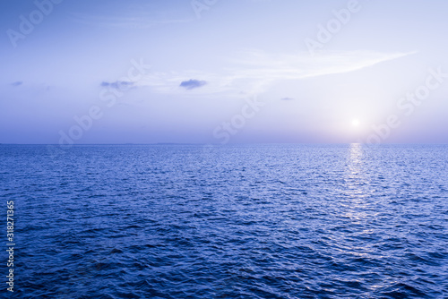 © patma145, Fototapeta premium Watercolor blue sunset over the blue ocean.
