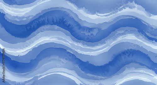 Obraz premium Watercolor Blue Wave Pattern Abstract Background Design