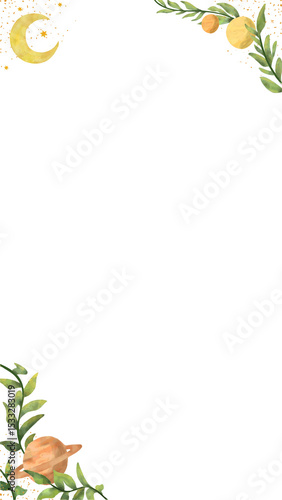 Obraz premium Watercolor border is showing transparent background with yellow moon, leaves,...