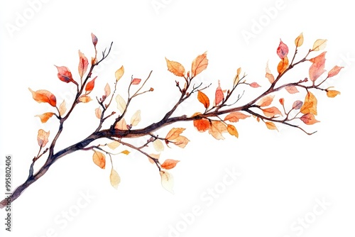 © GenBy, Obraz premium Watercolor branch with autumn leaves on a white isolated background.