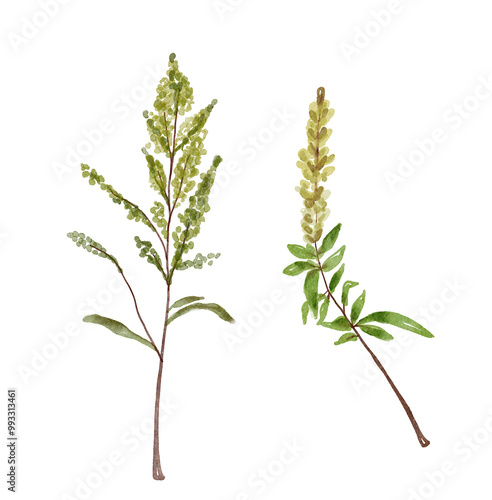 © NATALIA, Fototapeta premium Watercolor branchesset.. Hand painted isolated design elements. Botanical illustration for summer wedding design, greeting cards