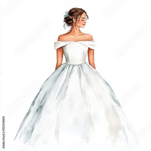 © donchanu, Fototapeta premium Watercolor Bride in Elegant Wedding Gown Soft Pastel Colors Whimsical Illustration