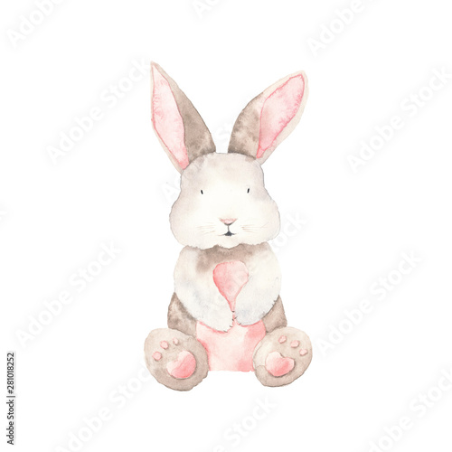 © taninka, Obraz premium Watercolor Bunny Animals Isolated On A White Background Hand Drawn Illustration