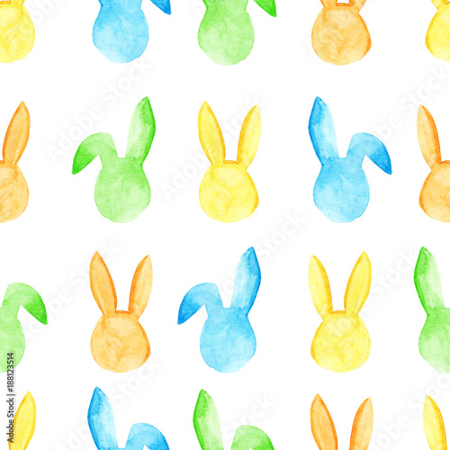 © masanyanka, Naklejka premium Watercolor bunny seamless pattern. Easter holidays. For design, card, print or background