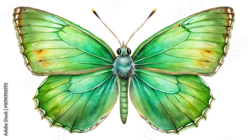 © RitaRuhi, Fototapeta premium Watercolor butterfly isolated on transparent background with green and yellow wings