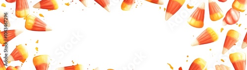 © Pachita, Obraz premium Watercolor candy corn and sweets, scattered along the edges, framing a large blank area