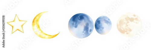 Obraz premium Watercolor Celestial Elements Star Crescent Moon Full Moon Phases