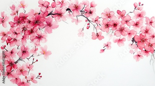 © pornsawan, Fototapeta premium Watercolor Cherry blossom blooming flower,Sakura tree or forest side view,Cherry tree spring flower background,elements for environment and garden,botanical in spring season.