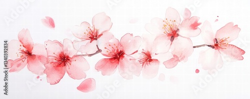 © pornsawan, Fototapeta premium Watercolor Cherry blossom blooming flower,Sakura tree or forest side view,Cherry tree spring flower background,elements for environment and garden,botanical in spring season.