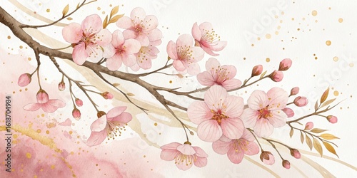 © Unique BG Stock, Fototapeta premium Watercolor cherry blossom branch painting for spring season floral design and decoration art