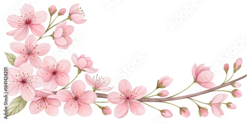 © IBRAHIM, Fototapeta premium Watercolor Cherry Blossom Flower Border Soft Pink