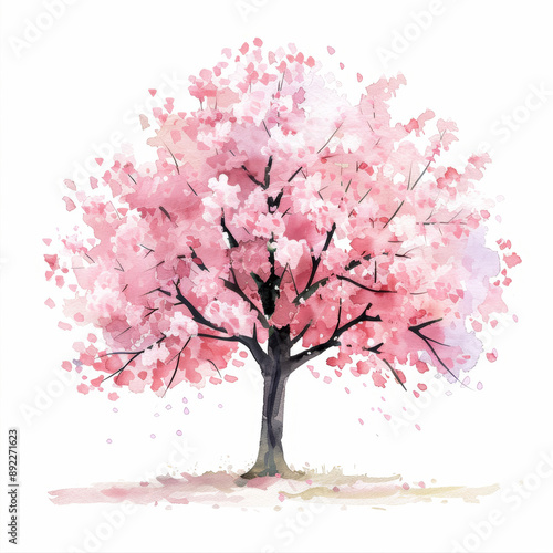 Fototapeta premium Watercolor Cherry Blossom Tree Illustration Spring Pink Floral Art Print