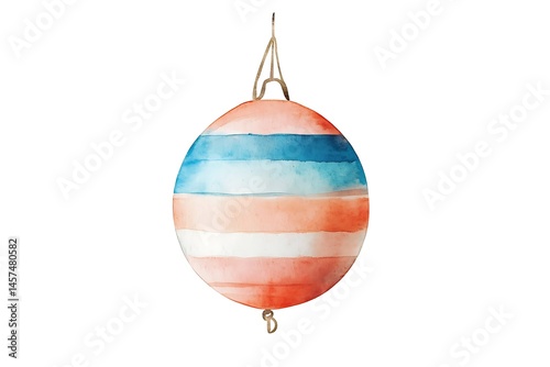 Obraz premium Watercolor Christmas ball with blue and red stripes