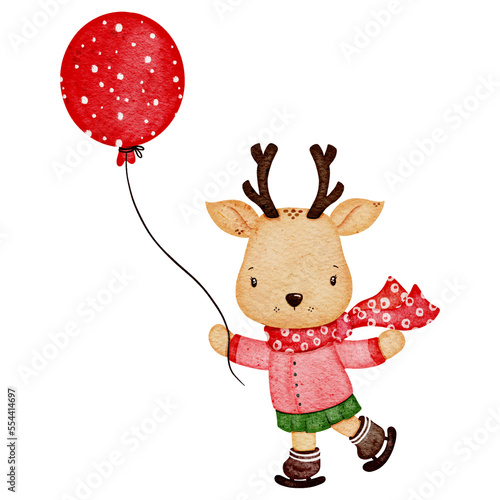 Fototapeta premium Watercolor christmas deer illustration
