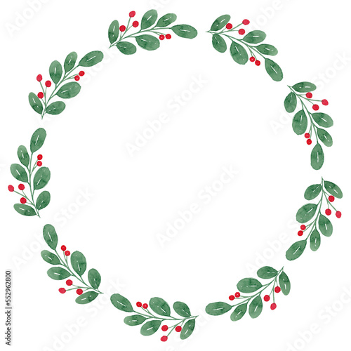 © SoCuteArtShop, Fototapeta premium Watercolor Christmas wreath with holly