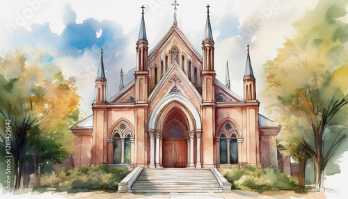 © Aidan, Obraz premium watercolor church architecture illustration watercolor illustrations