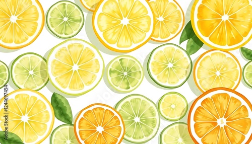 © ngati, Fototapeta premium Watercolor Citrus Fruit Slices Background Design