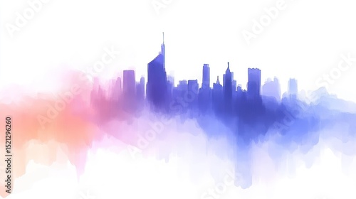 © setiyo, Fototapeta premium Watercolor cityscape skyline illustration.