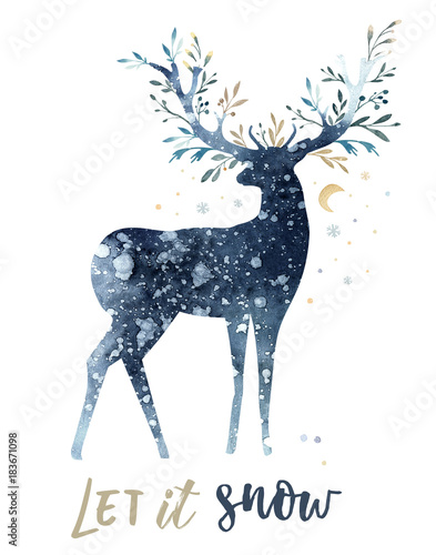 © kris_art, Fototapeta premium Watercolor closeup portrait of cute deer. Isolated on white background. Hand drawn christmas illustration. Greeting card animal winter design decoration