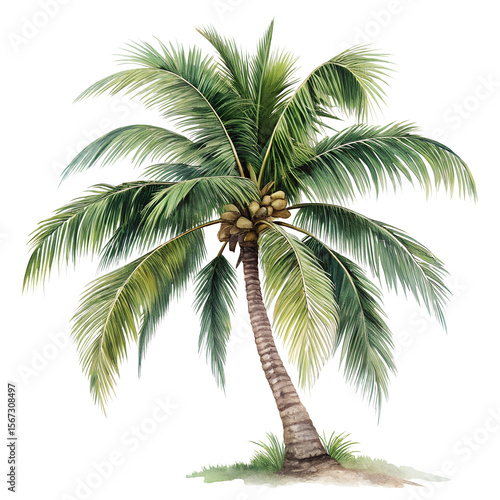 © SAYEDA, Fototapeta premium Watercolor Coconut Palm Tree with Coconuts Illustration on Transparent Background