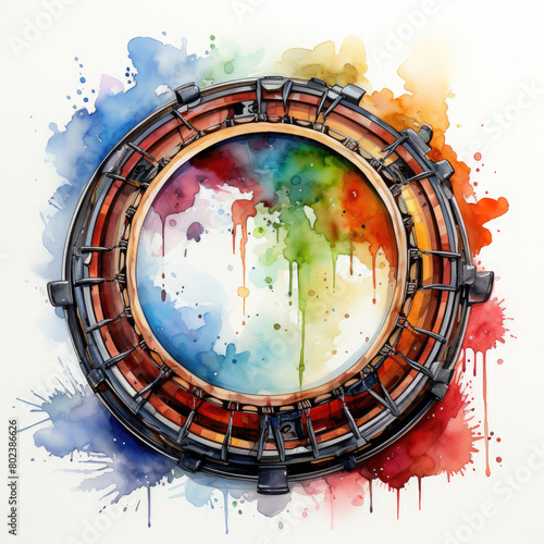 Obraz premium Watercolor Colorful Bodhran Illustration, Generative Ai
