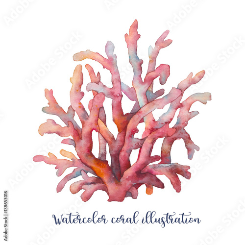 © ldinka, Naklejka premium Watercolor coral illustration. Hand drawn isolated underwaterc branches on white background.