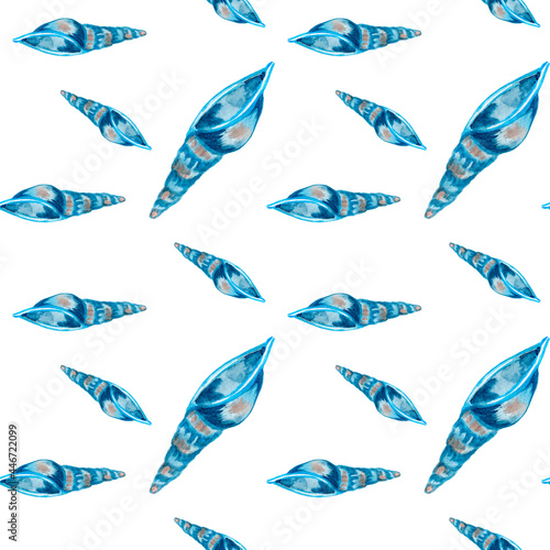 Fototapeta premium Watercolor corals. Seamless pattern with the underwater world sea animals.Paper Watercolor Blue Pattern.Splashy Seashell,Jellyfish,Fairy mermaids.