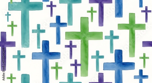 Obraz premium Watercolor Crosses Pattern - Faith, Religion, and Artistic Expression.
