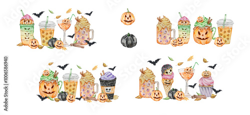 Fototapeta premium Watercolor Cute Halloween Drink set For Party Design