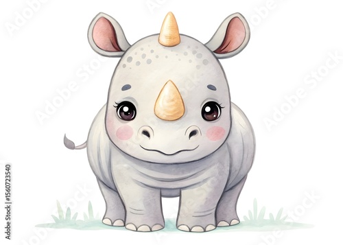 © designsy24 , Naklejka premium Watercolor cute kawaii rhino illustration