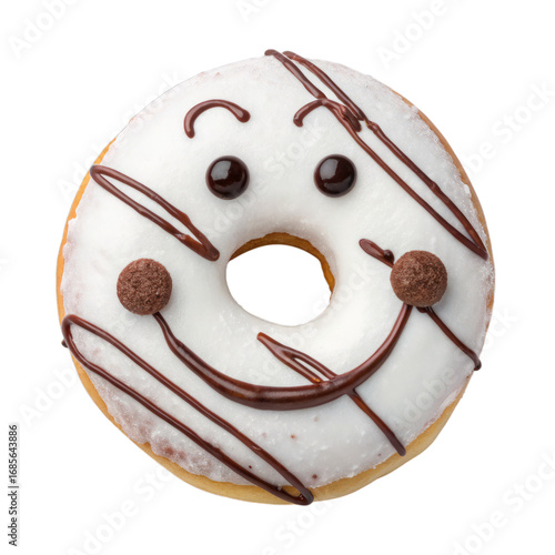Fototapeta premium Watercolor Cute Smiley Face Donut with White Icing and Chocolate