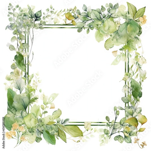 © Matyfiz, Obraz premium Watercolor decorative frame. Abstract background. Invitation, advertisement, thanks. Ornamental leaves. Generative AI.