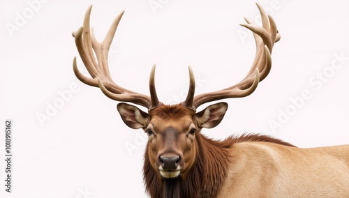 Fototapeta premium Watercolor depiction of an imposing elk with grand antlers against a pure...