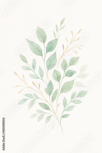 © Nibir, Fototapeta premium Watercolor depiction of gentle green leaves embracing the simplicity of nature in a calming botanical