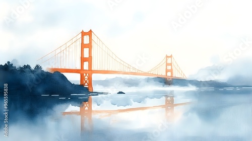 Fototapeta premium Watercolor Depiction of Golden Gate Bridge in Misty San Francisco Landscape