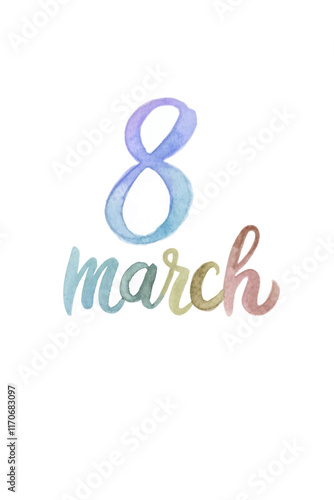 Fototapeta premium Watercolor design, March 8, International Women's Day, colorful text,...