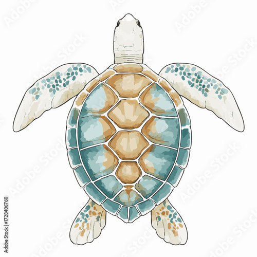Fototapeta premium Watercolor Detailed Sea Turtle with Turquoise Shell Animal Illustration