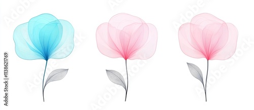 © Halina Berah, Obraz premium Watercolor digital illustration of a floral set, suitable for greeting cards, posters, invitations, banners, and other printing projects. It is isolated on a white background, highlighting