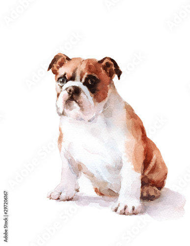 Fototapeta premium Watercolor Dog English Bulldog - Hand Painted Animals Pets Illustration isolated on withe background