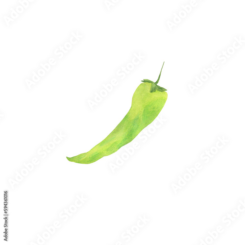 © Evgeniia, Obraz premium Watercolor drawing of green hot peppers