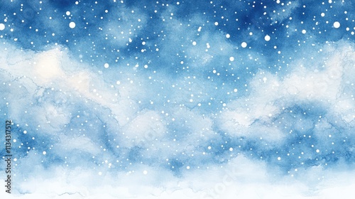© Vikarest, Obraz premium Watercolor drawing of winter sky landscape with falling snow, flecks and dots. Hand-drawn water color graphic painting on paper.