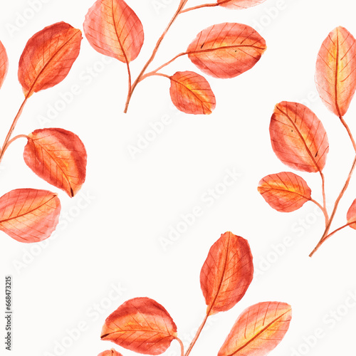 Obraz premium watercolor drawing, seamless pattern with yellow and brown leaves and twigs