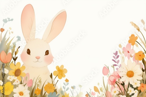 Obraz premium watercolor easter frame with cute bunny, flowers and eggs