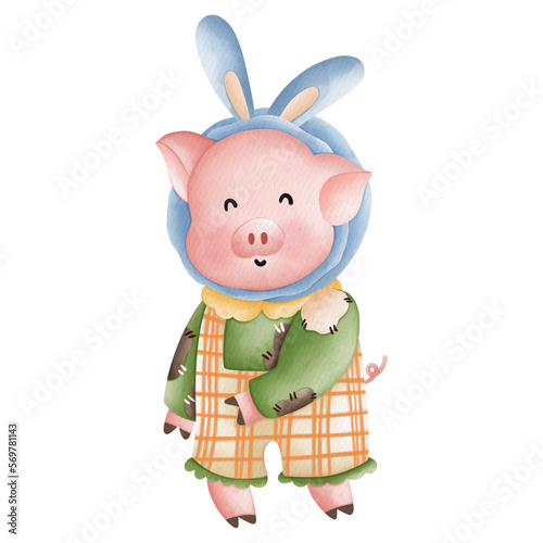 © Apixsala, Obraz premium Watercolor Easter Rabbit Animal Farmer, Easter Elements, Easter farm concept